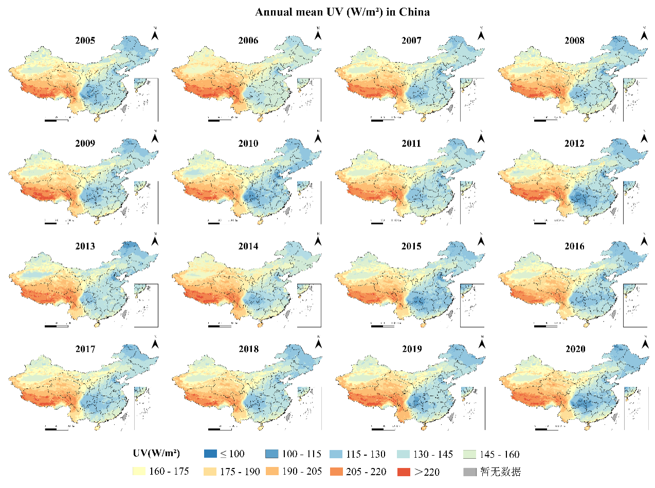 Evaluation of spatial and temporal distributions of ultraviolet radiation in China based on high-resolution predictions: 2005-2020.(投稿中)
